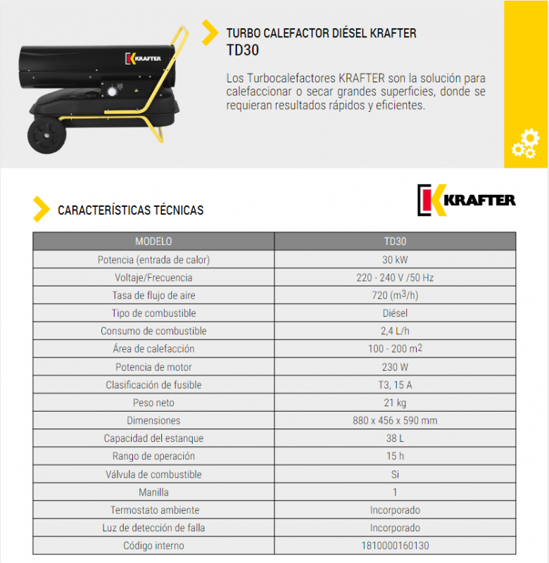 TURBO CALEFACTOR DIESEL KRAFTER TD30 30 KW