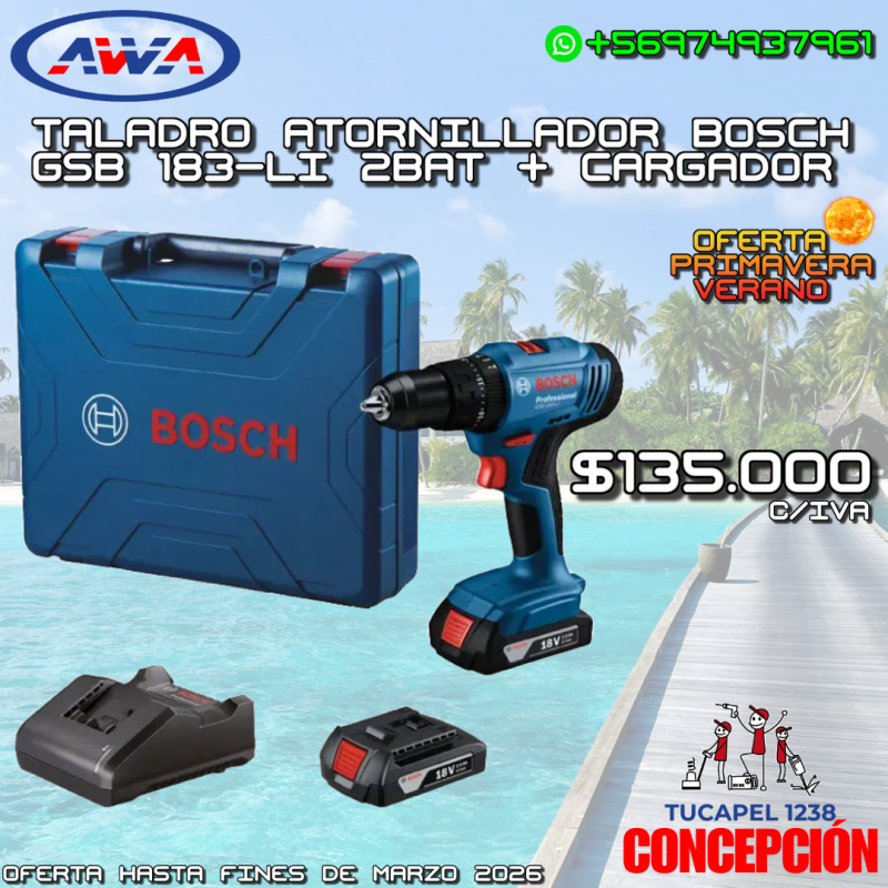 TALADRO ATORNILLADOR BOSCH GSB 183-LI 2 BATERIA + CARGADOR