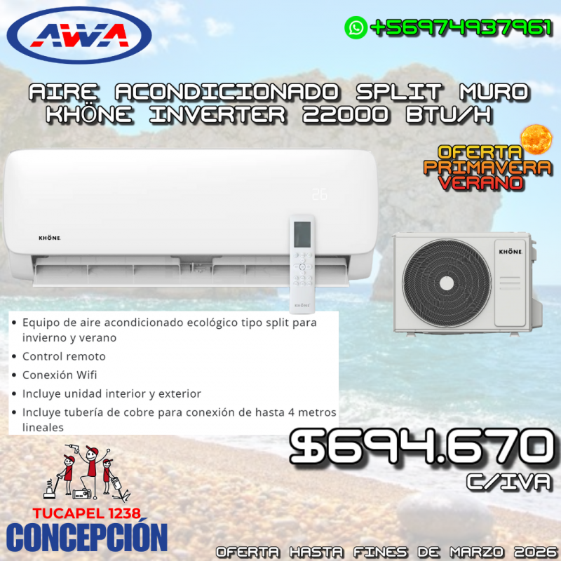 AIRE ACONDICIONADO SPLIT MURO KHÖNE INVERTER 22000 BTU/H