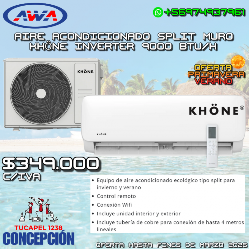 AIRE ACONDICIONADO SPLIT MURO KHÖNE INVERTER 9000 BTU/H