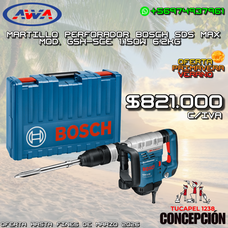 MARTILLO DEMOLEDOR SDS MAX BOSCH 1.150W 6.2 KG GSH-5CE