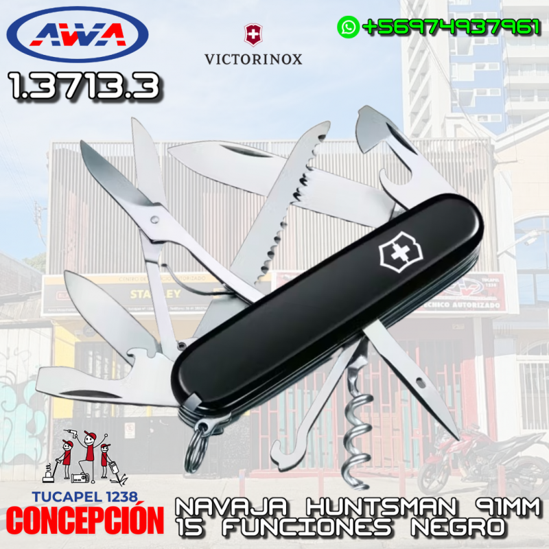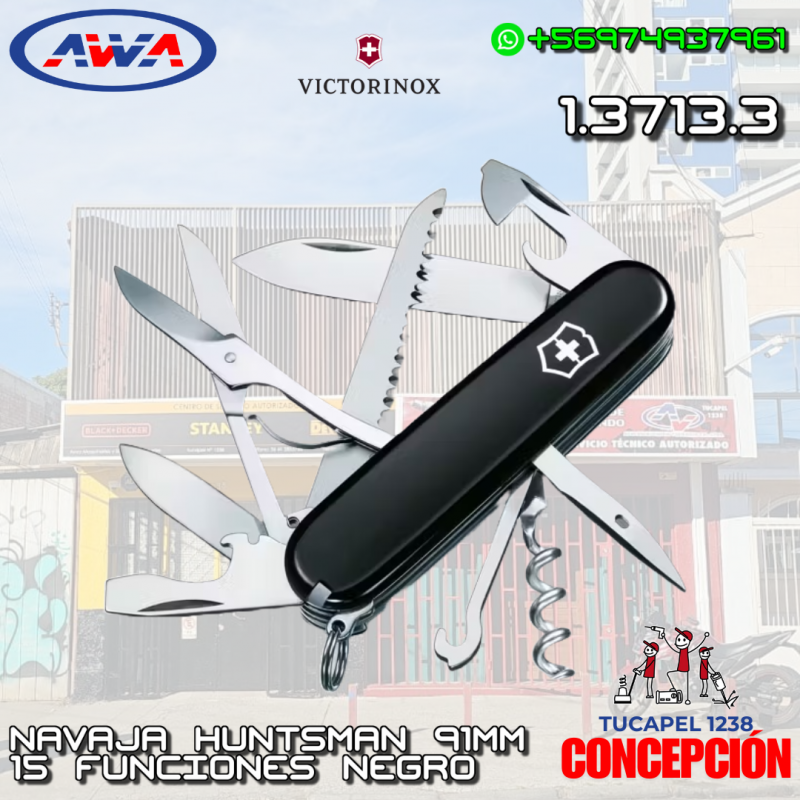 NAVAJA VICTORINOX HUNTSMAN 91MM 15 FUNCIONES NEGRO 1.3713....