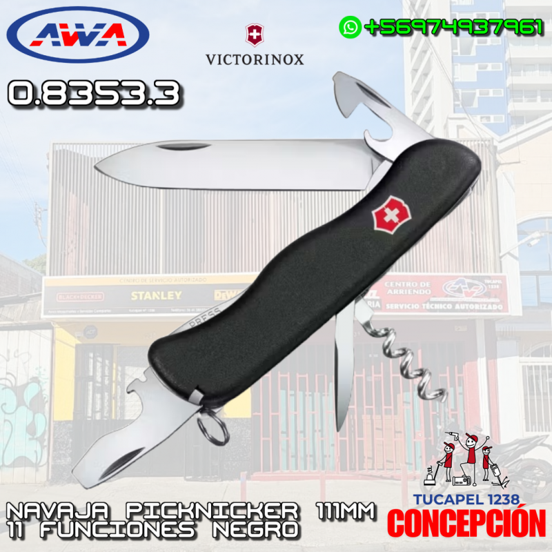 NAVAJA VICTORINOX PICKNICKER 111MM 11 FUNCIONES NEGRO