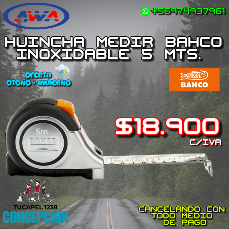 HUINCHA MEDIR BAHCO INOXIDABLE 5 METROS