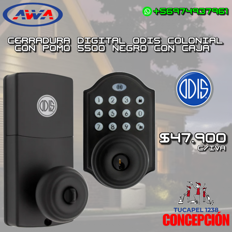 CERRADURA DIGITAL ODIS COLONIAL CON POMO 5500 NEGRO CON CAJA